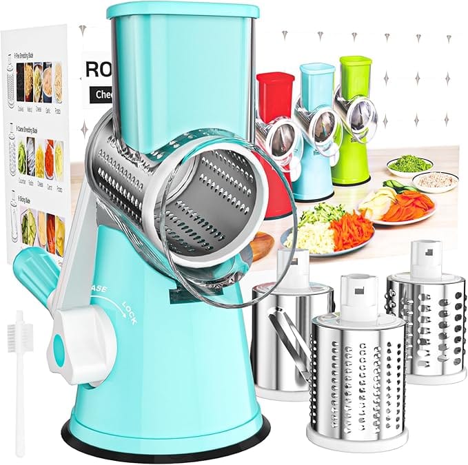 This cheese grater comes with three interchangeable blades, allowing you to slice, shred, and grind with ease. It's perfect for salads, hash browns, tacos, smoothies, and more.