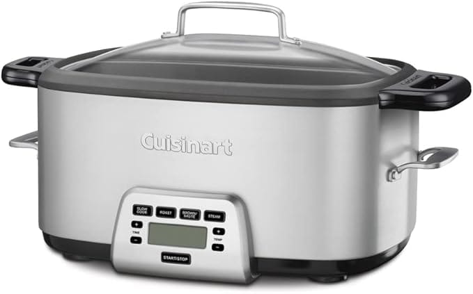 The Cuisinart Multicooker offers four primary functions: Slow Cook, Roast, Brown/Sauté, and Steam. It's perfect for a variety of dishes, from stews to roasted chicken.